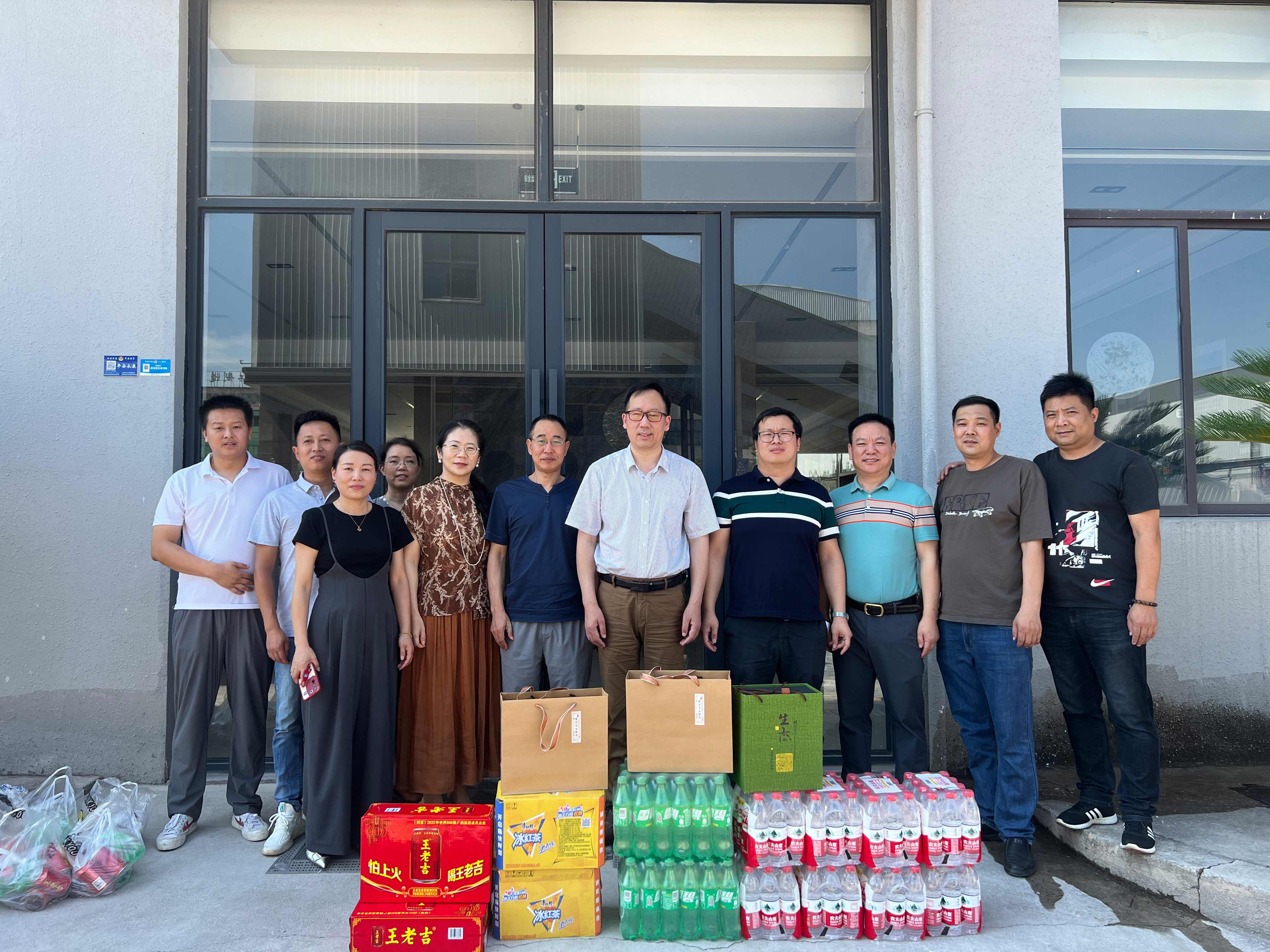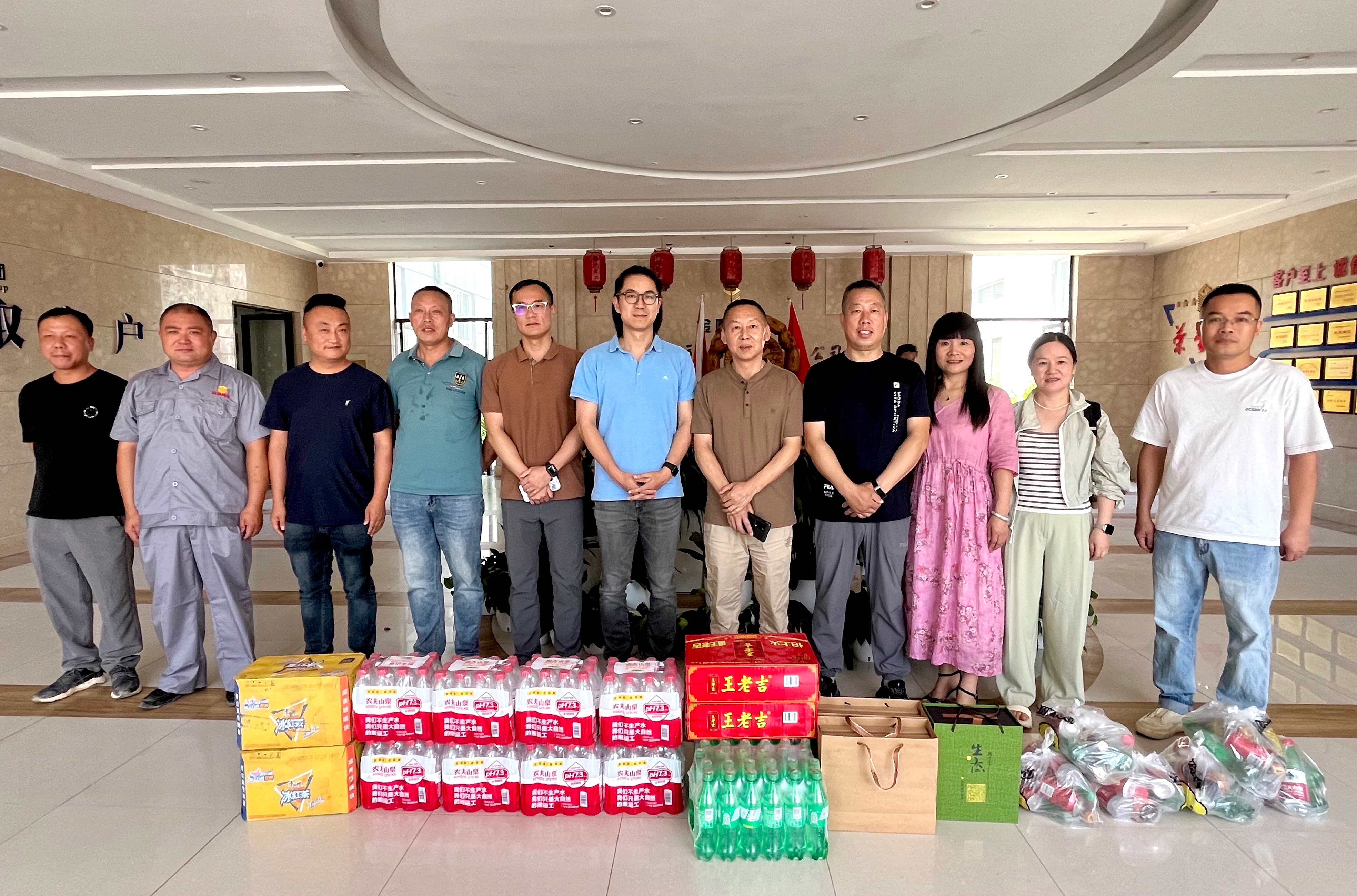 集團高管層分三路慰問近20家子公司。走訪中,集團領導深入子公司生產(chǎn)場地,了解各家公司的生產(chǎn)任務安排和員工的作息排班情況?!按蠹倚量嗔耍邷靥鞖庖欢ㄒ龊梅朗罱禍毓ぷ?!”在高溫工作現(xiàn)場,傅融總裁代表集團向奮戰(zhàn)在一線的員工致以親切的問候,并為他們送上冰紅茶、王老吉、礦泉水等清涼物資,對他們在高溫下堅守崗位表示感謝。傅總叮囑大家工作中要增強安全防護意識,落實好防暑降溫措施,確保安全生產(chǎn),平安度夏。