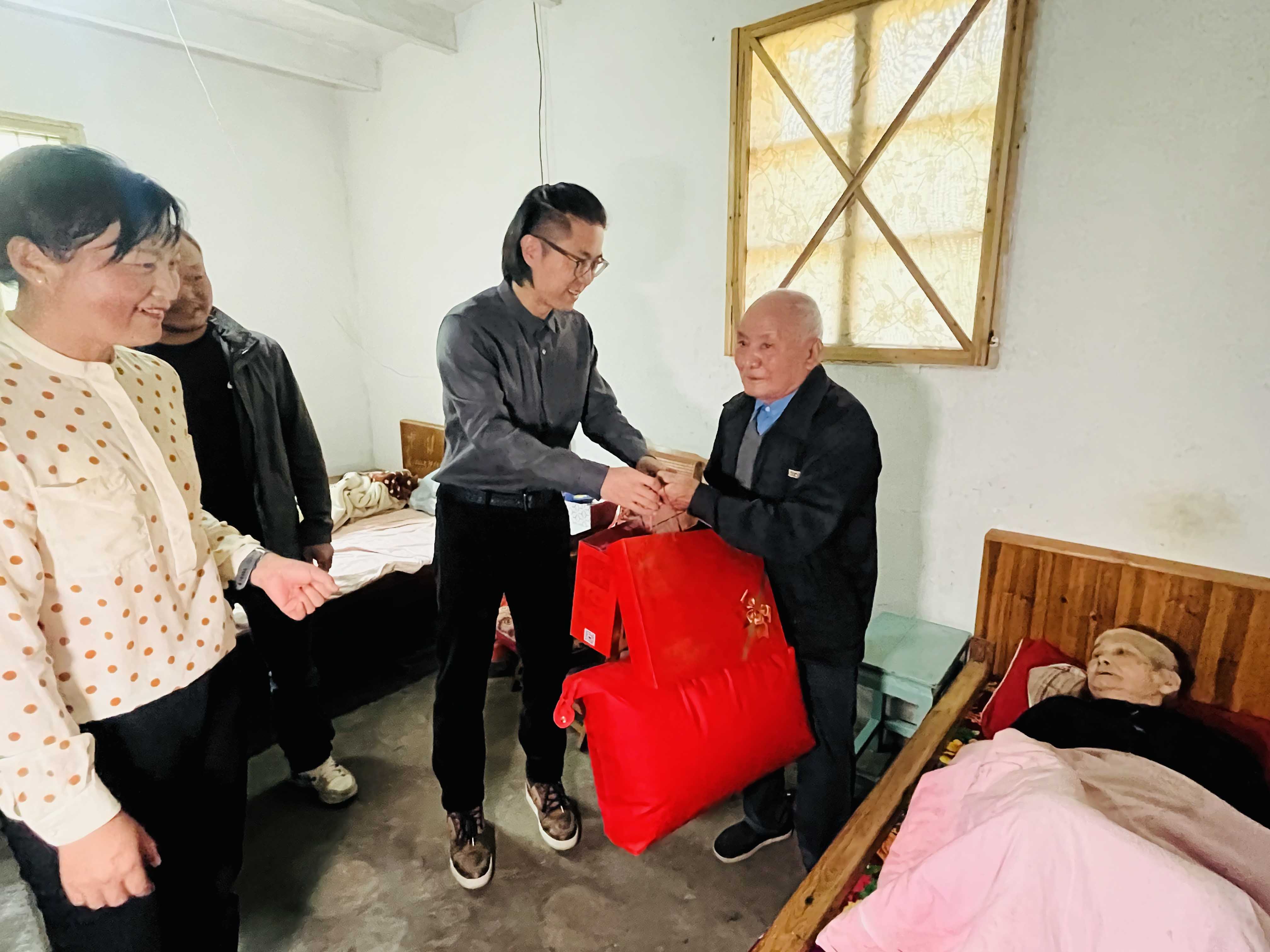 “重陽(yáng)節(jié)快樂,祝你們健康長(zhǎng)壽!”在村領(lǐng)導(dǎo)的陪同下,蔣晨虹董事長(zhǎng)、傅融總裁一行走訪了村里的困難家庭,為他們送上慰問金及食物、被子、洗浴用品等生活物資,并與他們親切交談,關(guān)心詢問他們的身體狀況和生活情況。這不僅讓困難家庭感受到了社會(huì)的溫暖和關(guān)懷,也進(jìn)一步體現(xiàn)了金廈對(duì)弱勢(shì)群體的關(guān)注和支持。