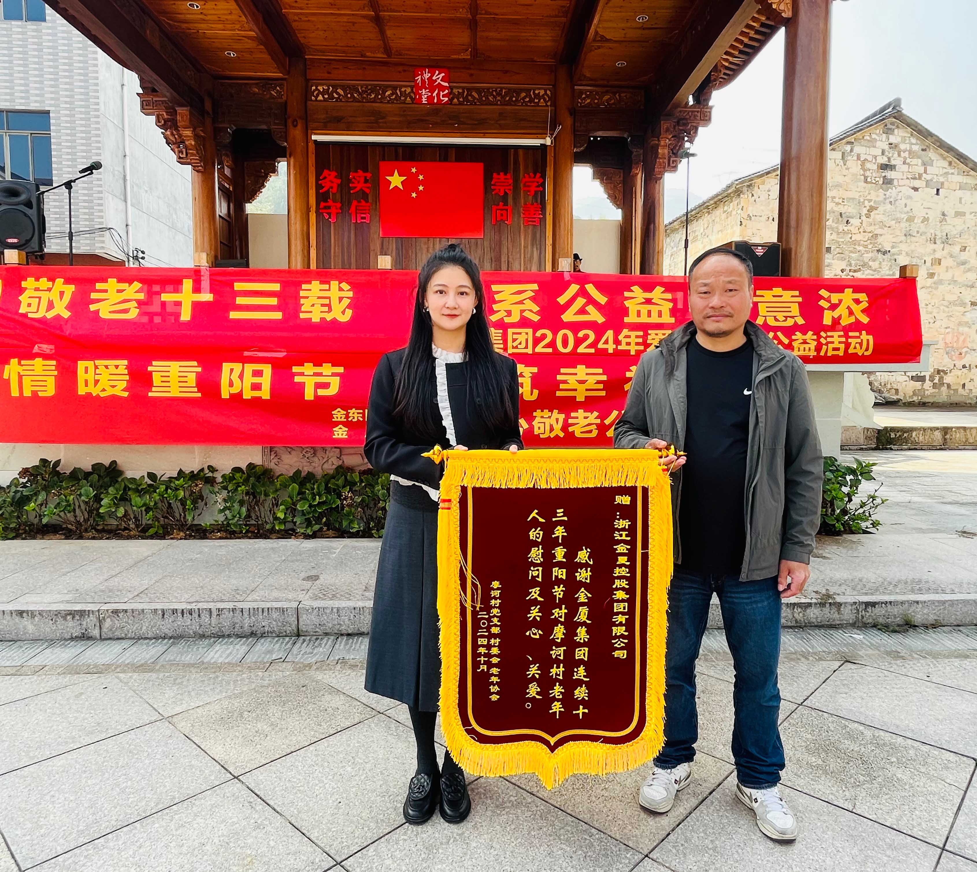在2024年重陽(yáng)節(jié)即將來(lái)臨之際,為進(jìn)一步弘揚(yáng)中華民族尊老敬老的傳統(tǒng)美德,展現(xiàn)企業(yè)的社會(huì)責(zé)任感, 10月10日上午,金華市政協(xié)委員、金廈集團(tuán)董事長(zhǎng)蔣晨虹率集團(tuán)高管及各條線負(fù)責(zé)人一行再次前往金東區(qū)嶺下鎮(zhèn)摩訶村,開展“情暖重陽(yáng)節(jié),共筑幸福夢(mèng)”重陽(yáng)慰問活動(dòng),為村里老年人和困難家庭送上慰問金、慰問品,并通過豐富多彩的活動(dòng)為大家送上節(jié)日的美好祝福。這也是金廈集團(tuán)連續(xù)第13年開展重陽(yáng)節(jié)助老公益活動(dòng)。